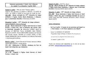 Annonces paroissiales du samedi 03 au dimanche 11 juillet 2021