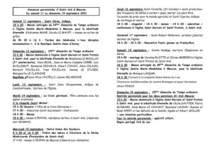 Annonces paroissiales du samedi 11 au dimanche 19 septembre 2021
