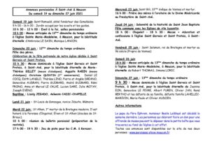 Annonces paroissiales du samedi 19 au dimanche 27 juin 2021