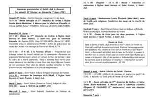 Annonces paroissiales du samedi 27 février au dimanche 7 mars 2021
