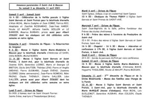 Annonces paroissiales du samedi 3 au dimanche 11 avril 2021