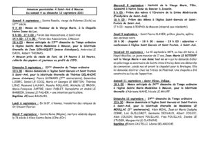 Annonces paroissiales du samedi 4 au dimanche 12 septembre 2021