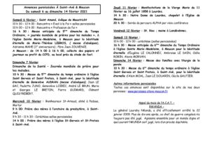 Annonces paroissiales du samedi 6 au dimanche 14 févier 2021