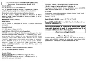 Annonces paroissiales samedi 10 au dimanche 18 août