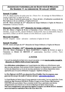 Annonces paroissiales samedi 11 au dimanche 19 juillet