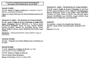 Annonces paroissiales samedi 13 au dimanche 21 juillet