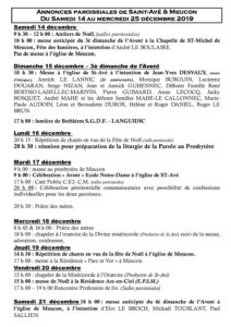 Annonces paroissiales samedi 14 au mercredi 25 octobre