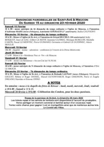 Annonces paroissiales samedi 15 au dimanche 23 février