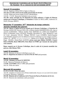 Annonces paroissiales samedi 16 au dimanche 24 novembre