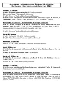 Annonces paroissiales samedi 18 au dimanche 26 janvier