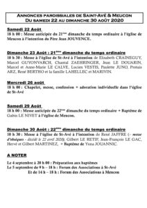 Annonces paroissiales samedi 22 au dimanche 30 août