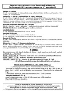 Annonces paroissiales samedi 22 février au dimanche 1 mars