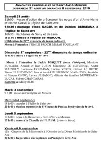 Annonces paroissiales samedi 31 au dimanche 8 septembre