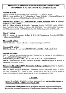 Annonces paroissiales samedi 4 au dimanche 12 juillet