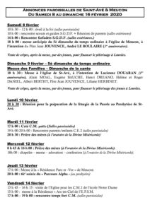 Annonces paroissiales samedi 8 au dimanche 16 février