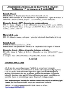 Annonces pour la Semaine du samedi 1er au dimanche 9 Août 2020