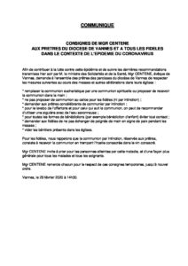Communiqué de Mgr Raymond CENTÈNE-29 février